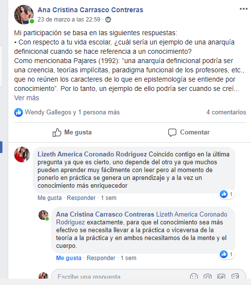 Act. 2. Se leyeron las lecturas “El conocimiento de la enseñanza” de Bolívar (1995) y “Epistemología y discurso pedagógico” de Hoyos (1992), luego de a ver leído se realizaron preguntas generadoras, luego se escogieron las preguntas esenciales, y se seleccionaron 3 de ellas, con las que se realizó un foro.