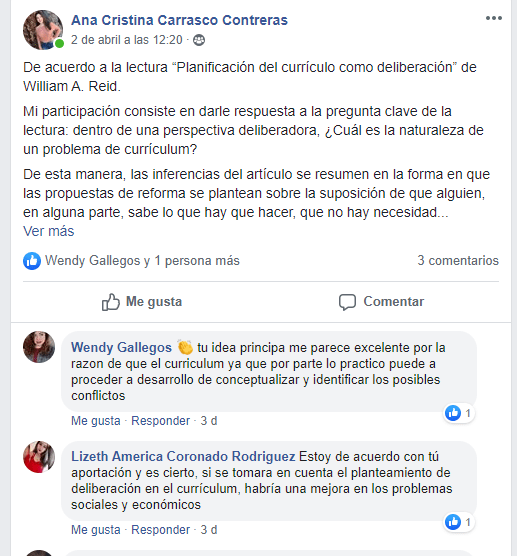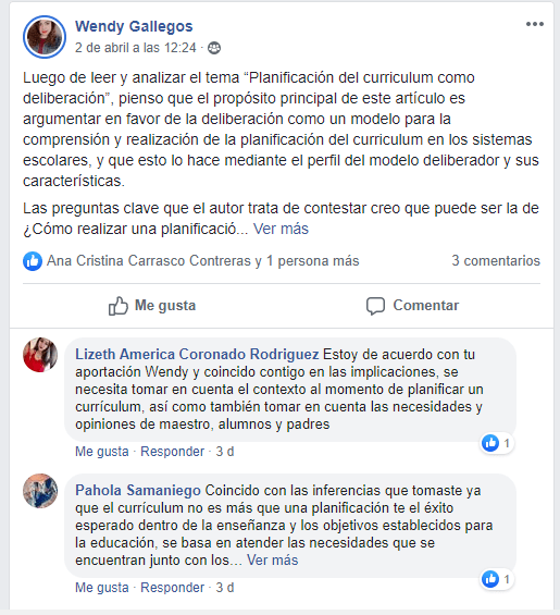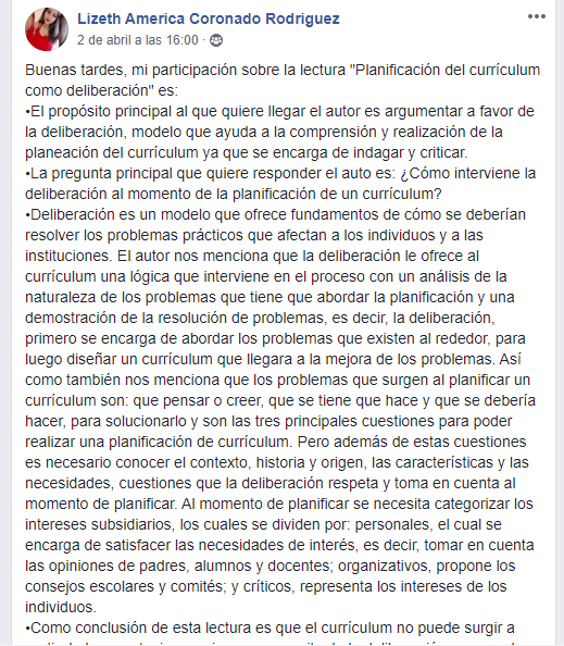 En esta actividad se realizó una lectura, la cual fue: “planificación del currículum como deliberación» de Reid (2002), luego de a ver leído se utilizó una plantilla de preguntas.